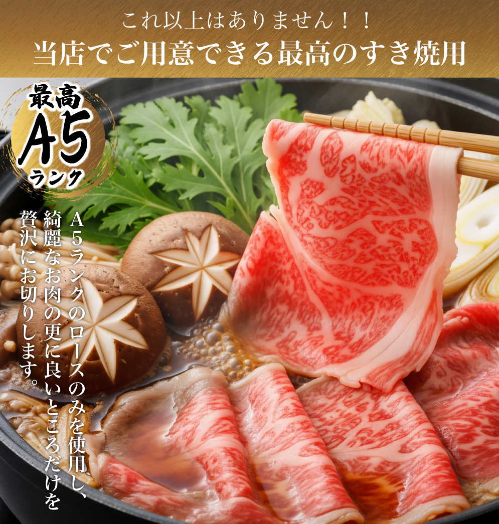 TOP用途から選ぶ すき焼き 店舗受取OK 黒毛和牛 最高級A5ランク 極上ロースすき焼き 価格: ¥10,000 (税込) ~ ¥20,000 (税込) [ポイント還元 100ポイント〜] 販売期間: グラム数: 選択してください 500g 10,000円(税込) 1kg(化粧箱入り) 20,000円(税込) 価格と在庫を一覧で確認する 価格: − 数量: 個 グラム数価格在庫500g 10,000円(税込)¥10,000(税込)在庫あり1kg(化粧箱入り) 20,000円(税込)¥20,000(税込)在庫あり 返品についての詳細はこちら 名称 最高A5ランク 黒毛和牛 極上ロース すき焼用 内容量 500g、1kg 賞味期限 パッケージに記載。美味しく食べていただきたいので、到着日より二週間以内にお召し上がりください 保存方法 冷凍 加工業者 有限会社 山重食肉 高知県高知市越前町2丁目6-14