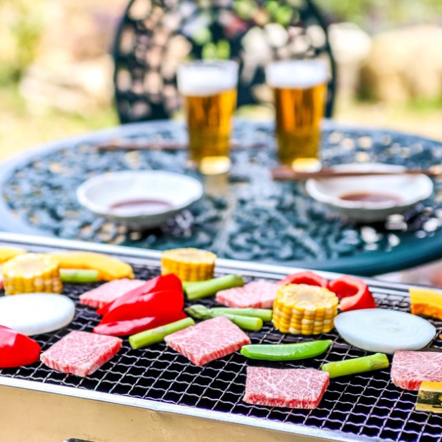 ※BBQコンロ、炭、お皿お箸コップはついていません。
