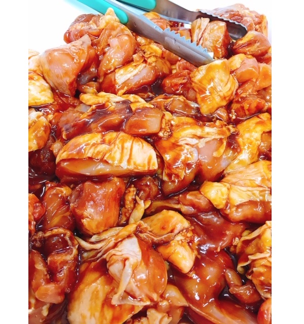 鶏ももを食べやすいよう一口サイズにそぎ切りし、美味しい甘口しょうゆベースに香味油を加えました。